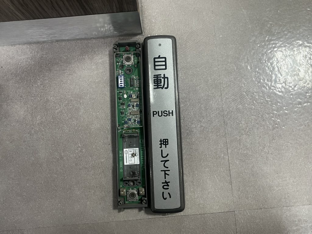 三重県 四日市市 自動ドア修理 三重県四日市市のユーザー様の紹介で、他の店舗様の自動ドアの修理依頼がありました。両開きの扉が全く開かないとの事で、タッチセンサーと受信器が壊れていました。 壊れていたタッチセンサー 新しく交換いたしました。 こちらは壊れたタッチセンサー受信器 こちらが新たに取付したタッチセンサーの受信器。無事に開閉するようになりました。すぐに対応してくれたと喜んでいただけました。ユーザー様からのご紹介。とても嬉しいです。 前へ 一覧へ 次へ