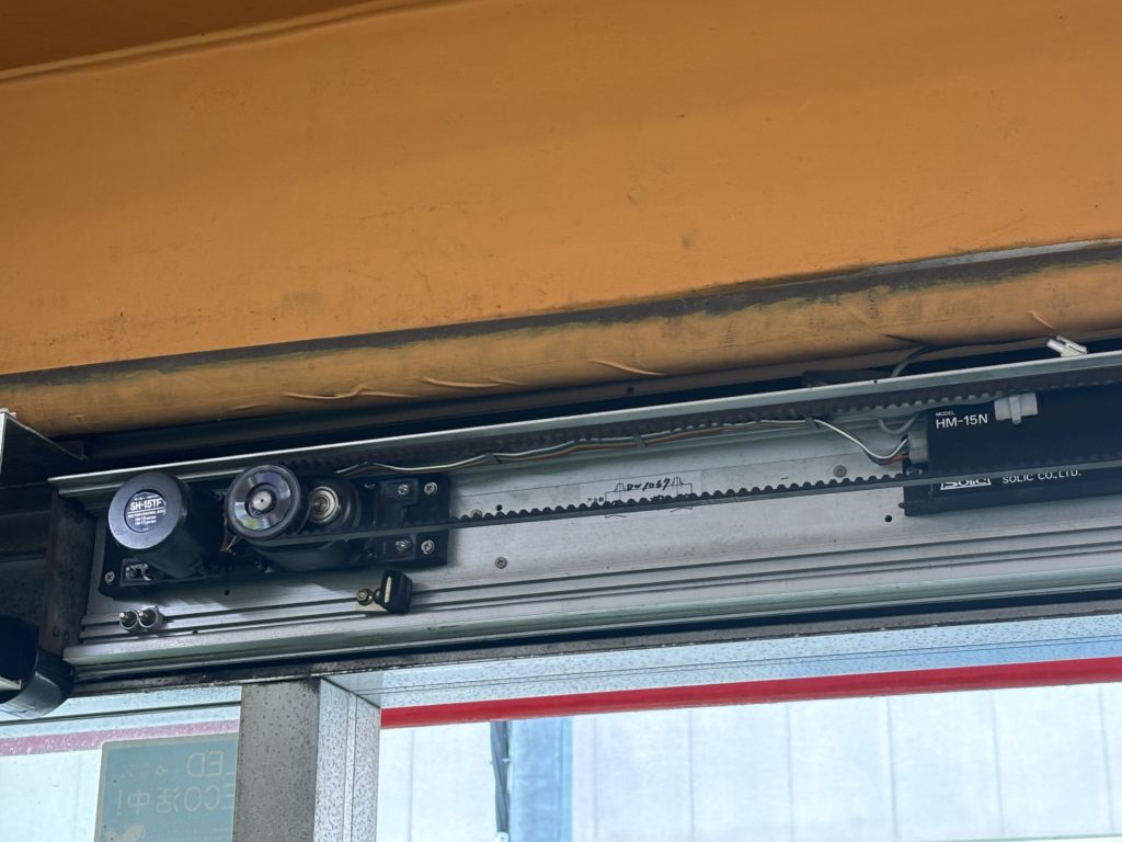 名古屋市 中区 自動ドア修理 名古屋市中区のお客様より自動ドアの動きがおかしいと修理依頼があり、モーターが故障していました。 こちらは元々ついていた故障したモーターです。 交換したモーターです。スムーズに動くようになりました。 前へ 一覧へ 次へ