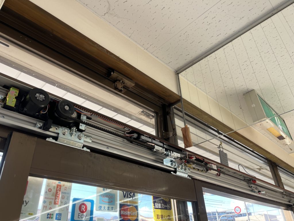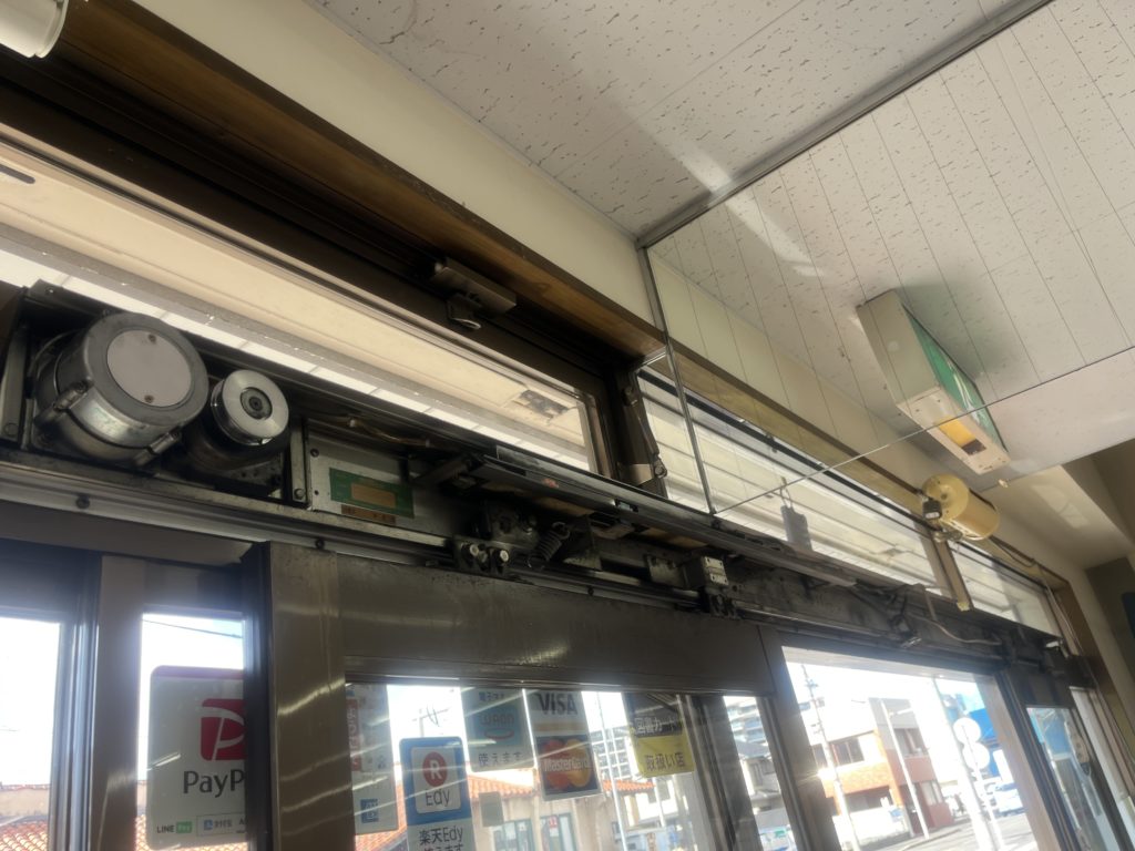 名古屋市 南区 自動ドア 名古屋市南区のお客様より自動ドアエンジン装置の取替依頼をいただきました。 元々ついていた自動ドアのエンジン装置 エンジン装置を取り外した状態です。 新たにエンジン装置を取付いたしました。完成です。 前へ 一覧へ 次へ