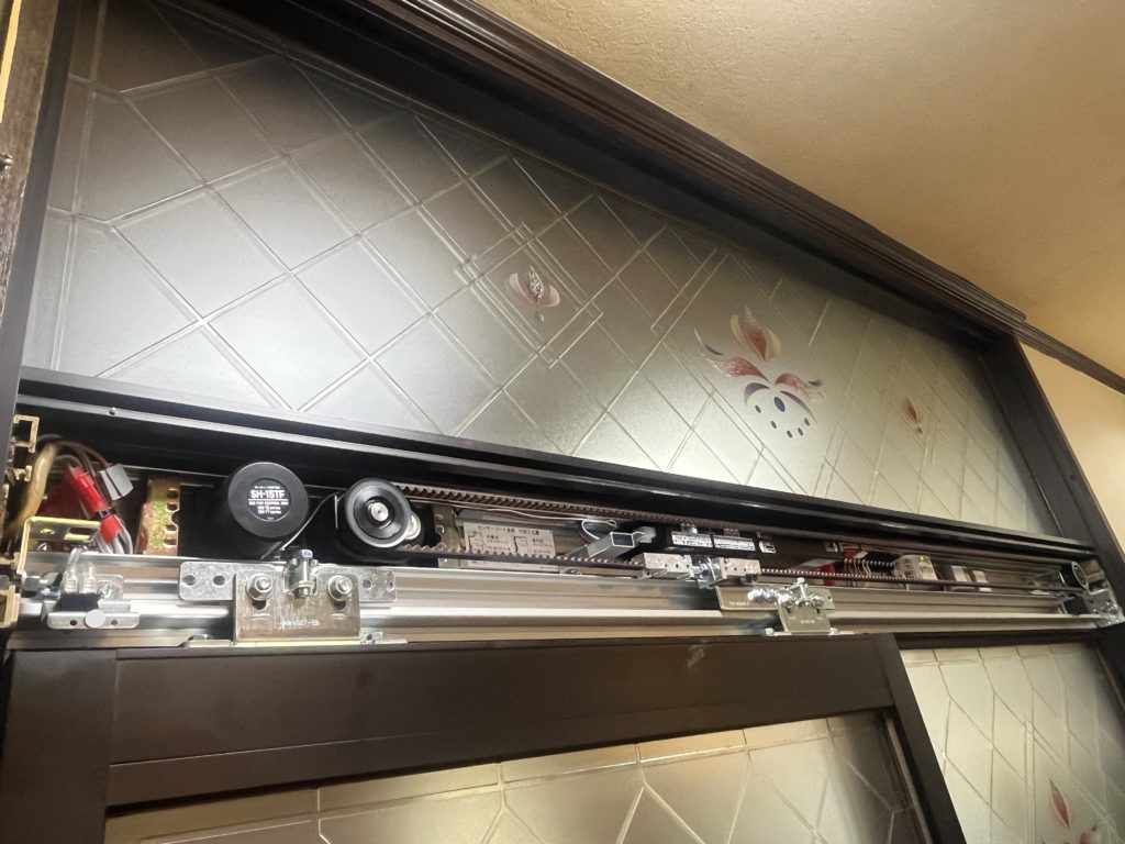 愛知県 豊田市 自動ドア 愛知県豊田市のユーザー様より自動ドアの取替依頼をいただきました。 こちらの自動ドアは一応動くものの、かなり音がしてすごい勢いで閉まってくるとの事で、廃盤機種でしたので取替の運びとなりました。 エンジン装置を取り外した状態 前へ 一覧へ 次へ